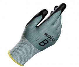 DescriptionHDPE fibre glove, polymer palm coating, cut resistance level B