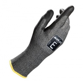 DescriptionHDPE fibre glove, PU palm coating, cut resistance level E