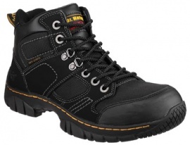 DescriptionBlack Dr Martens hi top trainer with rubber sole, safety mid sole, antistatic and heat resistant. Also available in lo trainer style.