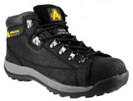 DescriptionBlack Hiker boot with rubber/Phylon sole with mid sole protection.
