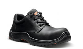 DescriptionBlack leather metal free 4 eyelet shoe.